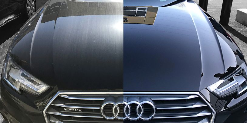 Foam wash and microfiber hand dry, wheel and tire degreasing with premium dressing, cleaning of door jambs, trunk seals, and exterior windows, plus dressing of exterior plastics. Clay bar treatment removes contaminants like sap and industrial fallout. Double-pass polish removes light scratches and swirls, followed by top-grade compound and full paint sealant for lasting gloss and protection.